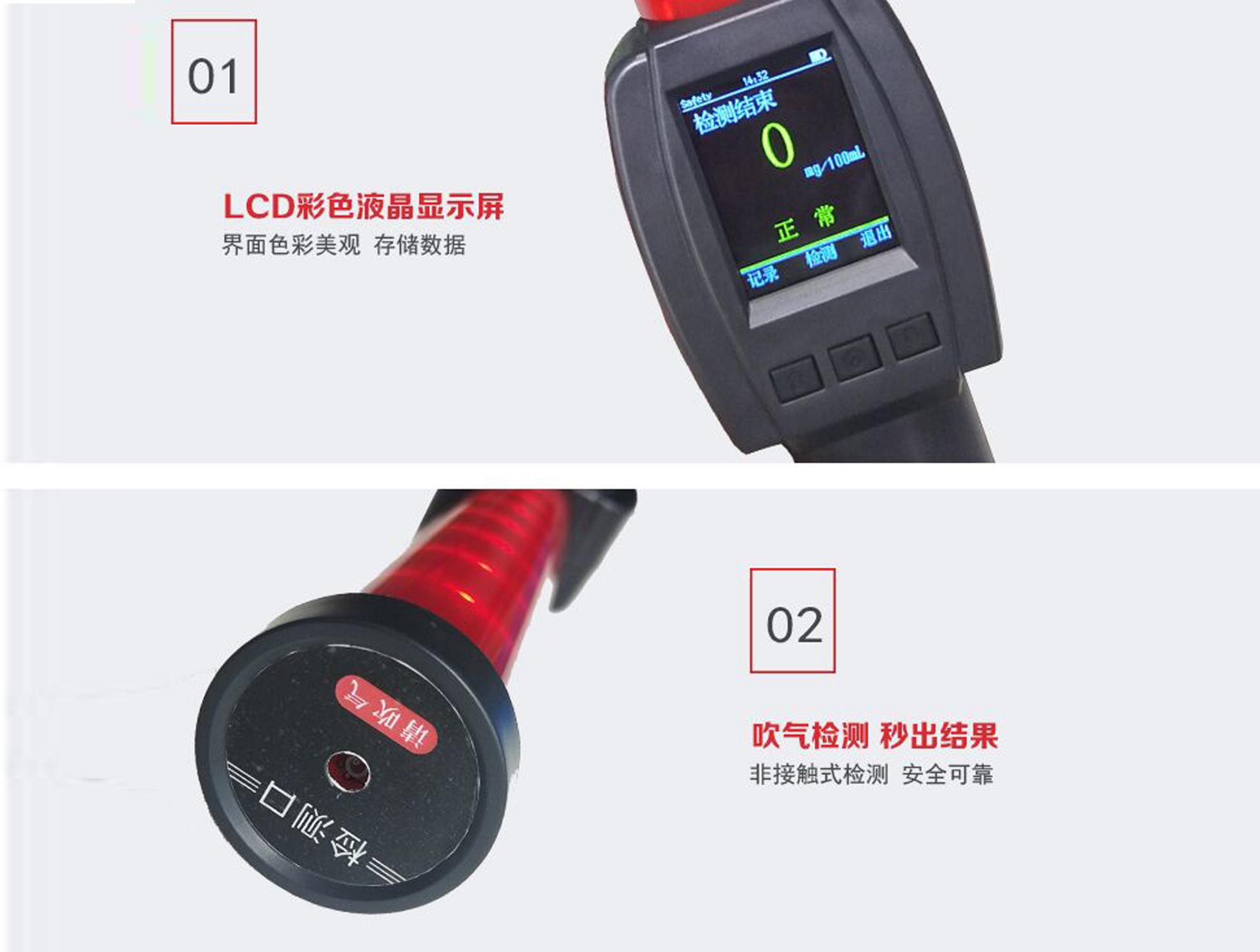 ZM-2100是我公司新研制的棒式泵吸快速排查酒檢儀。本儀器核心部件采用高科技電化學(xué)酒精傳感器,可以快速排查呼出氣體中的酒精含量,且抗干擾能力強;ZM-2100所擁有的精簡鍵盤、菜單操作和非常好的人機交互界面,使操作更加簡潔方便;彩色液晶屏顯示使界面更加美觀清晰;高亮度的報警燈指示,使用起來更加方便;無接觸式進氣口設(shè)計,保證了被測試者的健康安全。