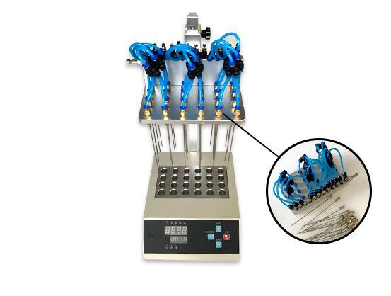 7、加熱器使樣品被快速加熱至蒸發(fā)溫度,同時氣體經(jīng)氣針吹至溶液表面,促使溶液快速蒸發(fā)和樣品濃縮。